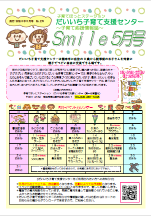 smile5月号をアップしますので、ダウンロードしていただき、親子で楽しくご利用ください。